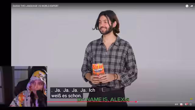 03:59:00Die Streamerin verwickelt sich in eine Diskussion über Sprachzugehörigkeiten. Zuerst erkennt sie, dass sie die Sprache nicht identifizieren kann, aber sie fühlt den 'Vibe'. Es folgen fehlerhafte Annahmen wie Jordanien, gefolgt von Korrekturen wie Kasachstan und Andorra. Sie gibt zu, mit Geografie und Sprachen total überfordert zu sein und beschreibt ihr eigenes Vorgehen als 'komplett' und 'falsch', was zu allgemeiner Verwirrung im Chat führt.