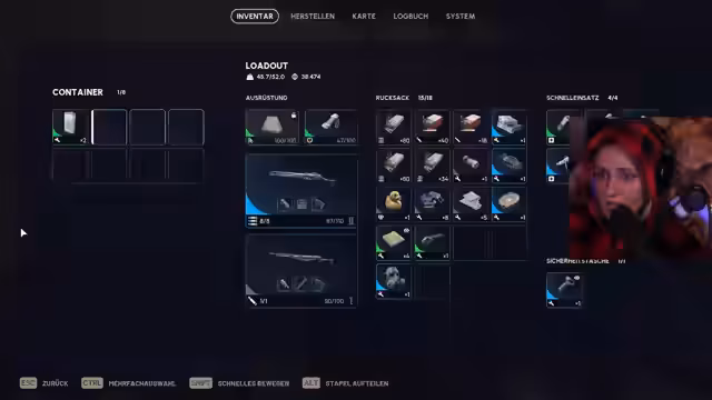 00:43:58Die Extraktion gestaltet sich gefährlich, da die Rocketeer in der Nähe ist. Der Streamer beschließt, die Extraktionstür erst zu rufen, wenn alle Teammitglieder in Sicherheit sind, um zu verhindern, dass jemand ausgeschaltet wird, bevor er den Extraktionspunkt erreicht. Trotz dieser Vorsichtsmaßnahme werden der Streamer und ein Teammitglied von der Rocketeer angeschossen, obwohl sie nicht direkt nebeneinander standen. Dies zeigt die große Reichweite und Gefahr des Gegners. Es wird die Erkenntnis gewonnen, dass man bei Kämpfen nicht neben einer ausgeschalteten Person stehen sollte, um den Verlust von Loot zu vermeiden. Nach der erfolgreichen Extraktion wird erneut das Problem des vollen Inventars angesprochen. Der Streamer hat 256 Plätze und kann nur noch einmal auf maximal 280 erweitern, was 200.000 Ocken kostet. Es wird überlegt, welche Gegenstände verkauft oder recycelt werden können, um Platz zu schaffen, ohne wichtige Dinge zu verlieren. Ein Bauplan für einen Schrotflinten-Choke 2 wird angeboten, da er doppelt vorhanden ist. Es wird diskutiert, ob es sich um einen Aufsatz oder eine Waffe handelt, und schließlich als Mündung identifiziert. Holy erhält den Bauplan, da der Streamer ihn später ohnehin wiederfinden wird.