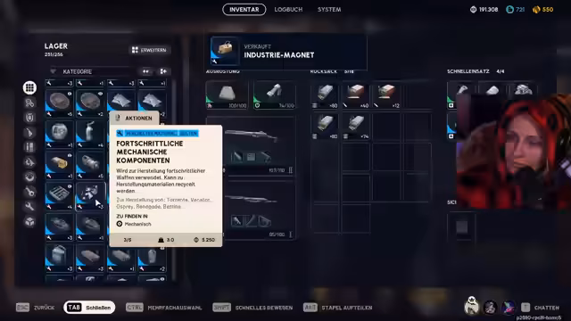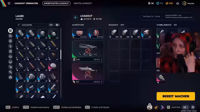 00:49:26Der Streamer versucht, sein Inventar zu organisieren und nicht benötigte Gegenstände zu verkaufen, um Platz zu schaffen und Geld für die nächste Inventarerweiterung zu sammeln. Er betont, wie wichtig es ist, mindestens einen Stack von bestimmten Gegenständen zu behalten, um für zukünftige Projekte gerüstet zu sein. Es wird erwähnt, dass er bereits 620.000 Ocken besitzt, aber das nächste Platzproblem absehbar ist. Für ein Projekt werden synthetischer Treibstoff und rote Kanister benötigt, die entscheidend sind, um große Kreaturen wie Krabben zu besiegen. Eine Anekdote über einen PvP-Spieler, der Fallen mit Gastpulten hinter Türen legt, um Gegner zu erledigen, wird erzählt. Pushox aus dem Chat gibt weitere hilfreiche Hinweise zu benötigten Gegenständen wie Kühlungslüftern, Lufterfrischern und Glühbirnen für das Projekt. Der Streamer bedauert, viele dieser Gegenstände bereits verkauft zu haben, tröstet sich aber damit, dass sie im Spiel wiedergefunden werden können. Das Team überlegt, ob es wieder auf dieselbe Map gehen oder die Quest mit der Hornisse und der Abzuggranate angehen soll. Es wird festgestellt, dass für die Abzuggranate genau die Materialien benötigt werden, die der Streamer zuvor verkauft hat, was die Herausforderung des Inventarmanagements unterstreicht. Es wird überlegt, ob die Granate auch gekauft werden kann, was sich als möglich herausstellt.