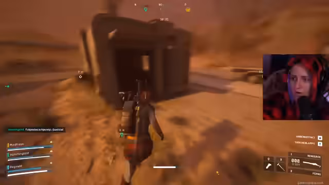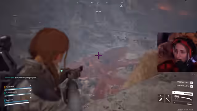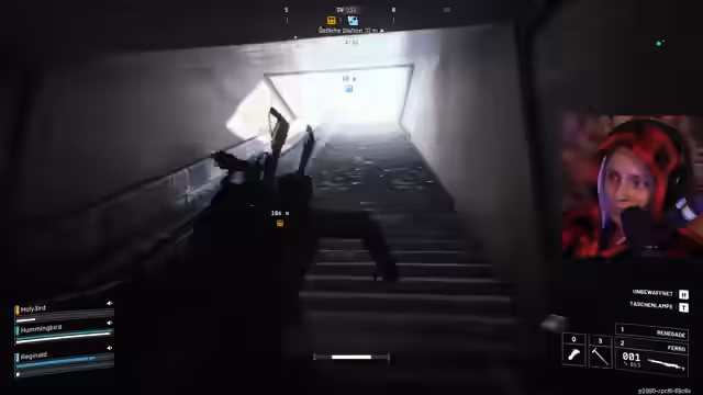 02:30:12Regina redet nicht und geht alleine auf Erkundungstour, was zu Frustration im Team führt, da befürchtet wird, dass sie stirbt und sich dann beschwert. Die Gruppe beschließt, ihr eigenes Ding zu machen. Ein horizontaler Griff in Pink wird gefunden. Es werden Schritte gehört, was auf die Anwesenheit anderer Spieler im Gebäude hindeutet. Die fehlende Kommunikation von Regina wird als sabotierend für das Team empfunden. Eine Waffenkiste wird gefunden, die eine Arpeggio enthält. Die fünf Minuten der Stummschaltung sind vorbei, und es wird über die Anstrengung gesprochen, schnell auf das Menü zuzugreifen und zu antworten. Ein lautes Geräusch wird gehört, das von einem riesigen Ding stammen könnte. Die Gruppe entdeckt eine tiefe Stelle und eine Leiter, die nicht zum Ausgang führt. Eine Krabbe wird von Gegnern angegriffen. Es wird festgestellt, dass das Schlachtfeld zwar geil ist, aber Open Field für Queen nicht gut ist. Eine Leiter endet ohne Plattform, was zu einem Sturz führt. Es wird diskutiert, ob man etwas hätte drücken müssen, um sicher herunterzukommen. Der Sturz wird als 'Troll-Leiter' der Entwickler bezeichnet, und es wird Bedauern geäußert, dass niemand gewarnt hat. Ein Spieler opfert sich, um die anderen zu retten, und es wird versucht, sich vor Hornissen zu verstecken.