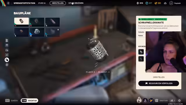 08:02:36Im Verlauf des Streams erhält die Gruppe eine Quest, zwei ArcG-Regner mit Explosionsgranaten zu zerstören. Es stellt sich heraus, dass hierfür leichte Aufschlagsgranaten benötigt werden. Ein Teammitglied hat bereits 15 davon, was die Aufgabe vereinfacht. Parallel dazu wird über die Raiderluke-Quest gesprochen, bei der ein Schlüssel benötigt wird, der entweder für 9000 gekauft oder selbst gecraftet werden kann. Der Schlüssel wird erworben, und es wird diskutiert, ob ein Schlüssel für das gesamte Team ausreicht oder jeder einen benötigt. Die Gruppe beschließt, dies zu testen. Ein Kissen wird als Sicherheitsobjekt in den Rucksack gelegt, um es bei Bedarf weiterzugeben.