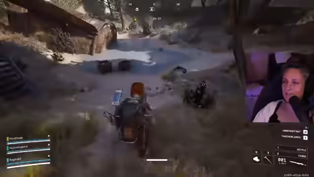 08:11:32Während des Spiels stößt die Gruppe auf verschiedene Gegner und Herausforderungen. Eine Hornisse wird gesichtet und bekämpft, wobei die Streamerin feststellt, dass sie vergessen hat, Schildauflader mitzunehmen, aber von einem Teammitglied versorgt wird. Es wird ein Arc-Beobachter entdeckt, eine Kugel, die blaue Lichtstrahlen aussendet und schwer zu zerstören ist, aber lootbare Teile verliert. Die Reparatur der Luke wird erfolgreich durchgeführt, und die Quest wird abgeschlossen, wodurch ein weiterer Raider-Lukenschlüssel als Belohnung erhalten wird. Die Gruppe beschließt, noch weiter zu looten, um Pilze zu sammeln und XP zu erhalten, während sie gleichzeitig Quests wie das Zerstören eines Feuerballs und eines Geschützturms verfolgen. Es kommt zu weiteren Gefechten mit Drohnen und Snitches, die die Gruppe in Bedrängnis bringen.