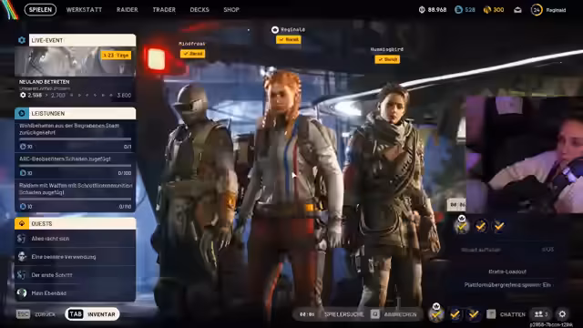 04:50:08Nach einer unerwarteten Konfrontation mit feindlichen Spielern bei einem Extraktionspunkt, bei der die Streamerin und ihr Team ihre gesamte Ausrüstung verloren haben, wird die Frustration über die aggressive Spielweise deutlich. Es wird überlegt, ob man selbst zu einer rücksichtsloseren Taktik übergehen sollte, da das Töten anderer Spieler ebenfalls eine Quest sein kann. Trotz des Rückschlags wurde eine andere Quest abgeschlossen, und eine neue Quest zur Suche nach einer ARC-Sonde wird angenommen. Die Streamerin bereitet sich auf die nächste Runde vor, indem sie Munition und andere notwendige Gegenstände kauft. Es wird entschieden, erneut den Raumhafen zu besuchen, um die Sonde zu finden und die verlorene Ausrüstung wiederzuerlangen. Die Möglichkeit von Solo-Runden wird in Betracht gezogen, um weitere Ressourcen zu sammeln und unerforschte Gebiete zu erkunden. Die Suche nach den Sonden wird als Herausforderung angesehen, da diese zufällig verteilt sind und nicht direkt gerufen werden können.