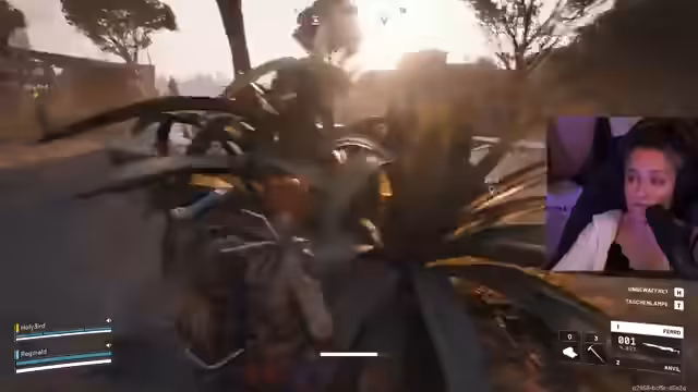 01:41:04Die Spielerin und Holly geraten in intensive Kämpfe, bei denen die Streamerin beinahe von einem Auto überfahren wird und sich über ihre eigenen 'Fettfingerei' ärgert. Sie kämpfen gegen Snitches und andere Gegner, die immer wieder Verstärkung rufen. Die Suche nach Kissen und Pilzen bleibt eine Herausforderung, da die Umgebung scheinbar umgebaut wurde und Gegner überall lauern. Nach Hollys Abschied versucht die Streamerin, ein gratis Loadout zu nutzen, um Kissen zu finden. Sie spawnt jedoch direkt in einem Hornissen-Nest und wird sofort getötet, was ihren Frust über unfaire Spawns verdeutlicht. Trotz des Rückschlags ist sie erleichtert, keine wertvolle Ausrüstung verloren zu haben.