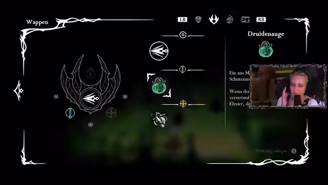 00:08:09Nachdem die Streamerin ein scharfes Ramen gegessen hat, überlegt sie, ob sie dazu Kaffee trinken soll. Anschließend kehrt sie zum Spiel Hollow Knight zurück. Sie erinnert sich daran, die drei Bären gesammelt zu haben, kann sich aber nicht mehr daran erinnern, wo der Charakter ist, dem sie diese versprochen hat. Sie räumt ein, dass Orientierungslosigkeit ein großes Problem im Spiel ist und kündigt an, dass sie im Laufe des Spiels wahrscheinlich ausrasten wird, weil sie sich verirrt. Trotzdem versucht sie, sich zu orientieren und den richtigen Weg zu finden, um ihre Aufgabe zu erfüllen. Dabei fragt sie im Chat nach Tipps und Hinweisen, da sie sich in der Spielwelt verirrt hat und Schwierigkeiten hat, den Charakter zu finden, dem sie die gesammelten Bären bringen soll. Sie beschreibt ihre Orientierungslosigkeit und die damit verbundene Frustration, während sie verschiedene Wege ausprobiert und sich anscheinend immer wieder verläuft.