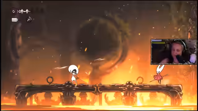 01:55:09Nach einem erfolglosen Versuch in 'Call of Duty' wechselt der Streamer zu 'Hollow Knight', speziell dem Kampf gegen die Bosse 'Lace'. Auch hier stocken die Fähigkeiten nach der langen Pause. Der Streamer verliert mehrfach den Faden und macht Fehler bei der Einschätzung von Abständen und Angriffsmustern, was ihn frustriert und ihn zum Aufgeben des Kampfes bewegt.