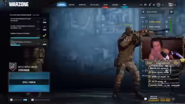 08:25:32Zu Beginn des Streams wird in Verdansk gespielt, wobei der Fokus auf der Erkundung eines Gebäudes und der Nutzung von Ziplinen liegt. Streamer begegnen Problemen bei der Navigation, verpassen Sprungmöglichkeiten und müssen alternative Wege finden. Das Spielgeschehen ist geprägt von intensiven Kämpfen, darunter das Eliminieren von Gegnern und das Erfüllen von Aufträgen wie dem Suchen einer Lupe. Dabei werden auch taktische Elemente wie das Platzieren von Minen und das Erkennen von Gegnern durch rote Umrandungen erwähnt.