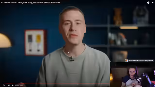 04:43:22Die Streamerin spricht über ein Video von Gnu, auf das sie bereits reagiert hat, in dem Gnu über ihre persönlichen Probleme und Beziehungsprobleme spricht. Sie zeigt sich schockiert darüber, dass Gnu unter diesem Video viele Hasskommentare erhalten hat, insbesondere von toxischen Männern. Sie erwähnt, dass Gnu zusammen mit Rezo ein Video gemacht hat, in dem sie diese Kommentare thematisieren. Anschließend kündigt sie an, ein Video von Marvin anzusehen, das den Titel 'Influencer werben für eigenen Song, den sie nie gesungen haben' trägt. Sie äußert ihre Überraschung über diesen Titel und spekuliert darüber, wie Influencer KI nutzen könnten, um Songs zu erstellen, ohne selbst singen zu müssen. Sie betont, dass sie es für unangebracht hält, solche KI-generierten Songs als eigene Leistung zu bewerben.