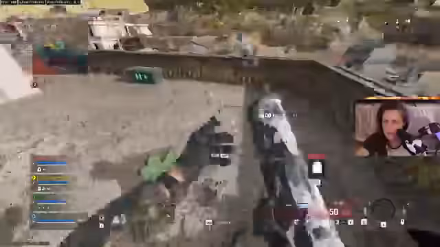 02:17:43Die Streamerin erlebt intensives Kampfgeschehen in der Nähe des Wasserturms und der Prison. Feinde landen und springen permanent auf dem Wasserturm, während sie selbst aus unklarer Richtung beschossen wird. Sie vermutet Gegner bei Pink und im Bio-Labor. Eine größere Gefahr droht, da eine Gegendrohnzone bald aktiv wird, was das schnelle Bewegen erfordert und die Spieler zwingt, ihre Positionen zu wechseln. Die Gegner agieren sehr koordiniert, was die Streamerin als extrem anstrengend beschreibt.