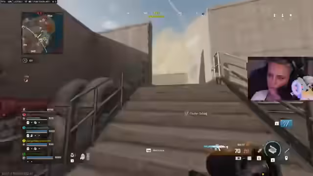 10:58:35Der Streamer befindet sich in einem intensiven Feuergefecht in der Map Chemical. Es wird die Position eines Gegners beobachtet, der sich umpositioniert hat. Nach einem erfolgreichen shield-brake wird der Gegner ausgemacht und ein weiterer Feind wird im Fenster gesichtet. Die Situation eskaliert schnell, als der Streamer plötzlich blendet und unter Beschuss gerät, wobei ein Gegner als down gilt. Die Position der Feinde ist vielfältig, mit Gegnern auf dem Dach, im Gang und im Einsatzgebiet.