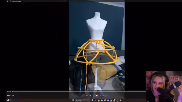 00:18:15Die Streamerin berichtet von einem aufwendigen Bastelprojekt, an dem sie die ganze Woche gearbeitet hat, um emotionalen Stress abzubauen. Sie arbeitet an einem Couture-Outfit, das aus einem billigen Reifrock und Chunky Garnen aus ihrer Wishlist besteht. Das Besondere an dem Projekt ist, dass das Outfit aus einem einzigen, ununterbrochenen Garn gefertigt wird, der sich von unten nach oben windet und verschiedene Elemente wie Blütenblätter und Reifen bildet. Sie zeigt Bilder des Fortschritts und erklärt die Herausforderung, das Outfit tragbar zu machen, da es derzeit keinen Verschluss hat. Daher muss der durchgehende Garn im Rücken durchgeschnitten werden, um ein Schnürsystem im Korsagenstil einzubauen, was ihr trotz des Aufwands große Schmerzen bereitet. Sie experimentiert zudem mit Gießharztropfen in Schwarz und Transparent, um dem Outfit einen schmelzenden oder 'schwarzes Blut blutenden' Effekt zu verleihen, inspiriert von Lumière aus 'Die Schöne und das Biest'. Neben diesem Projekt arbeitet sie auch am 'Millennial Drip' Outfit und plant, die seit einem Jahr wartenden Flügel für ein Weihnachtsshooting fertigzustellen. Gegen Ende des Streams treten technische Probleme mit Discord und dem Internet auf, die dazu führen, dass der Stream kurz beendet und der PC neu gestartet werden muss, um die Funktionalität wiederherzustellen.