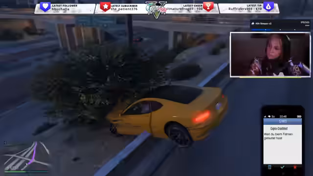 02:08:34Nach einem virtuellen Unfall in GTA wegen zu viel Ablenkung durch das Handy nutzt Regina die Situation, um eine wichtige Botschaft zu vermitteln: Fahren und gleichzeitiges Handynutzen sind eine gefährliche Kombination. Sie zieht Parallelen zwischen dem Spiel und dem echten Leben und nutzt die Situation als Lehreinheit für ihre Zuschauer.