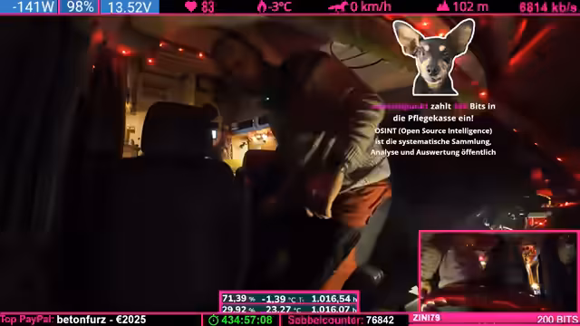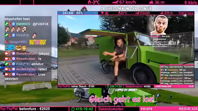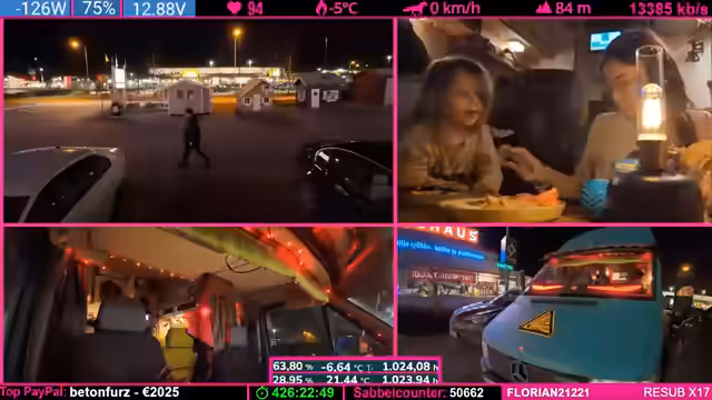 00:00:00Zu Beginn des Streams beschäftigt sich der Streamer mit anhaltenden technischen Problemen. Es gibt massive Schwierigkeiten mit der Stromversorgung des Wohnmobils, insbesondere bei der 12V-Anlage. Nach einer Inspektion stellt er fest, dass durch unsachgemäße Arbeiten am Holz des Rahmens möglicherweise ein Kurzschluss entstanden ist. Trotz der Beseitigung der Isolierung und sichtbarer Fehler bleibt das Problem bestehen. Er berichtet von einem gefährlichen Vorfall, bei dem ein Ladeadapter plötzlich Wechselspannung abgab, was als hochriskant eingestuft wird.