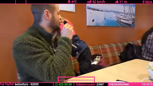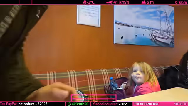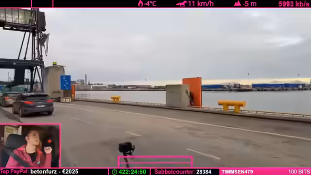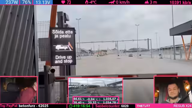 03:23:53Die Überfahrt nach Helsinki gestaltet sich als langwierig. Der Streamer diskutiert mit seinem Kind über die Ankunftszeit der Fähre, die laut Plan um 13:32 Uhr erfolgen soll. Es entstehen repetitive Gespräche über das bevorstehende Fest und die Dauer der Wartezeit von voraussichtlich zwei Stunden. Währenddessen werden technische Überlegungen zur Funkstrecke und Internetverbindung angestellt, da die Verbindung zum Stream schwankt.
