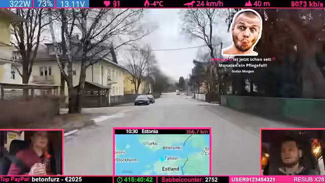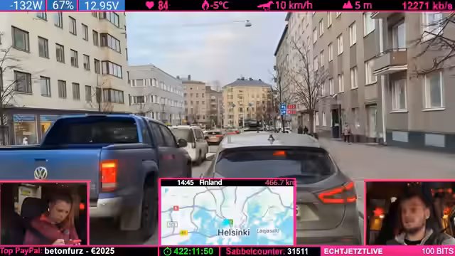 03:49:20Während der Fahrt durch Helsinki kommt es zu einer Verkehrskontrolle durch die finnische Polizei. Die Interaktion verläuft positiv, die Beamten loben das Streaming-Setup. Der Streamer reflektiert über die Erfahrungen mit Polizeikontrollen auf Reisen und betont, dass diese meist unkompliziert verlaufen. Gleichzeitig werden kritische Gedanken zum gesellschaftlichen Umgang mit Regeln und Überwachung geäußert.