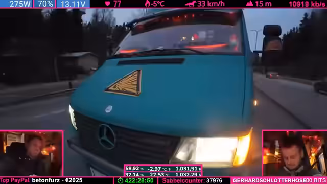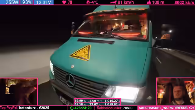 06:15:19Das Fahrzeug Helge wird detailliert beschrieben – ein 30 Jahre alter Sprinter mit über 345.000 Kilometern auf dem Buckel. Trotz seines Alters und der Rostprobleme (besonders im nachträglich eingebauten Hochdach) wird seine Robustheit und Zuverlässigkeit gelobt. Besonders hervor gehoben werden das durchdachte Raumkonzept mit Heckbad, der Platz für bis zu fünf Personen und das langlebige Triebwerk mit Duplex-Steuerkette, das bis zu 750.000 Kilometer halten kann. Der Streamer schildert die aufwendige Isolierungsarbeit, die nach massiven Feuchtigkeitsschäden im Hochdach notwendig war, um das Fahrzeug für Weltreisen winterfest zu machen. Trotz der Mängel wird Helge als charaktervolles, komfortables und praktisches Fahrzeug geschätzt, das moderne Wohnmobile in puncto Langlebigkeit und Raumkonzept übertrifft.