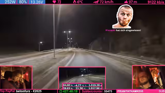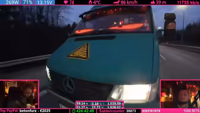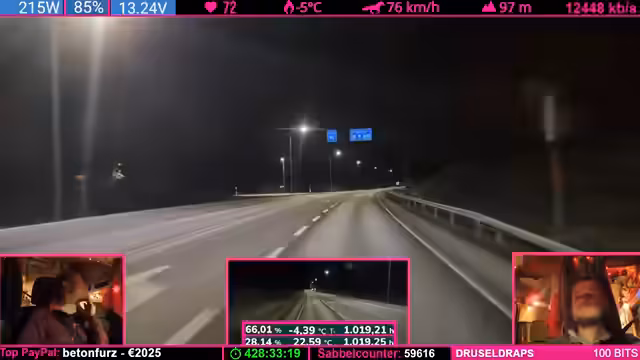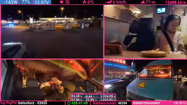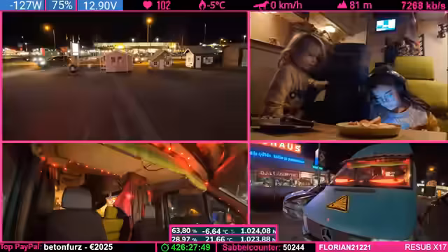 07:20:08Während der Weiterfahrt wird die angespannte Lage im Fahrzeug thematisiert: Die Mutter bittet darum, geladene Geräte und Geschirr sicher zu verstauen, um Beschädigungen während der Fahrt zu vermeiden. Es gibt Streit über Verantwortung und Ablageorten, aber auch humorvolle Momente mit dem Kind. Im Anschluss bedankt sich der Streamer ausführlich bei langjährigen Unterstützern der Community, darunter Benutzer mit 18 bis 28 Monaten Abonnement. Er würdigt deren Loyalität und betont, wie sehr er deren offene Meinungsäußerungen schätzt – im Gegensatz zu kritischen Zuschauern, die bei jeder Äußerung beschweren würden. Die Abschlussminute nutzt er, um spätere Pläne wie einen erneuten Ladestop anzukündigen.
