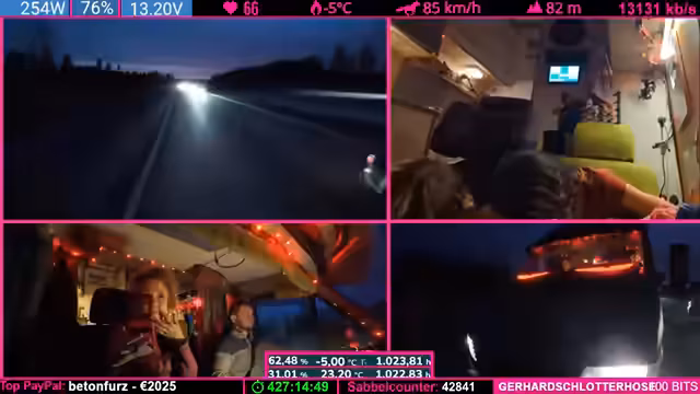Während der Fahrt ans Polarmeer müssen anhaltende technische Herausforderungen bewältigt werden. Es kommt zu Problemen mit der Stromversorgung des Wohnmobils und zu Defekten an der Ausrüstung für den Stream. Trotzdem wird die Route durch Finnland fortgesetzt, um ein Ziel in der Polarregion zu erreichen. Die Konzentration liegt auf der Sicherung der Technik und der Weiterfahrt.