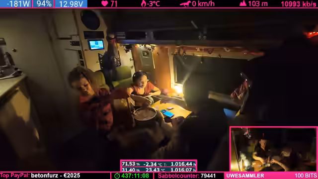 02:17:51Aufgrund der geringen Internetverbindung auf offener See werden verschiedene Strategien besprochen, um den Stream aufrechtzuerhalten. Es wird erklärt, dass Satelliteninternet auf Fähren üblich ist, aber aktuell nur schwaches LTE vom Festland verfügbar ist. Nach der Ankunft in Finnland wird stabiles Internet erwartet. Die Crew versucht, durch manuelle Einstellungen die Verbindung zu optimieren, während über die Herausforderungen von Schiffs-WLAN diskutiert wird.