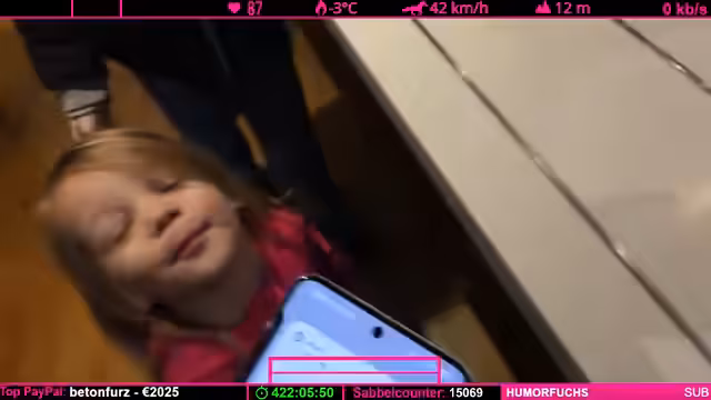 10:03:05Es wird ein technisches Problem mit der Kinderkamera angesprochen. Die App 'IL Pro' ist abgestürzt, wodurch die Bildübertragung dieser Kamera ausgefallen ist. Dies führte zu einer schwarzen Bildschirmausgabe für diesen Perspektivenwechsel. Der Streamer kündigt an, das Problem beheben zu wollen, um wieder die gewohnten multiplen Kameraperspektiven, insbesondere die der Kinder, anbieten zu können.