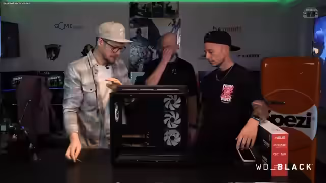 02:57:20Nach der Pause und den ersten Verlosungen wird der PC-Zusammenbau fortgesetzt. Der Fokus liegt auf dem anspruchsvollen Kabelmanagement. Die Front-IO-Kabel, einschließlich USB-C, HD-Audio und des Front-Panel-Anschlusses, müssen vom Gehäuseinneren durch das Chassis nach vorne zum Mainboard geführt werden. Der Streamer bezeichnet diesen Teil des Baus als "schlimmsten Teil" und nicht jedermanns Sache. Auch die Kabel für die Wasserkühlung werden erwähnt und das Thema CPU-Stromversorgung wird kurz angerissen.