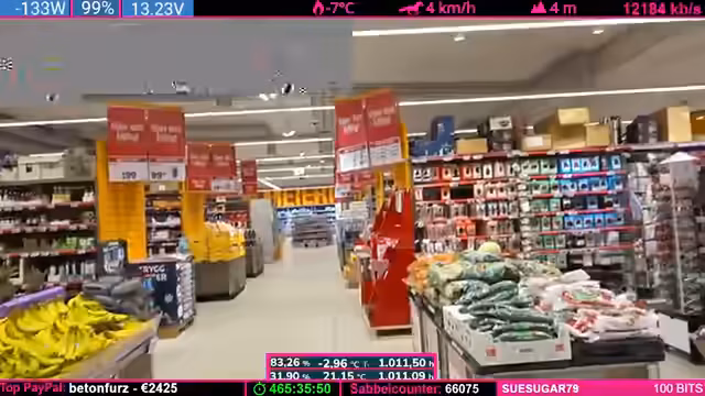 08:28:33Vor dem Einkauf muss das Auto, das als provisorischer Wohnraum dient, geordnet werden. Es gibt Chaos, nasse Matten und Müll, der erst beseitigt werden muss. Während des Einkaufs stößt der Streamer auf technische Probleme. Die Internetverbindung im Supermarkt ist extrem schlecht, was zu einem instabilen Stream und roten Qualitätsanzeigen führt. Dies erfordert eine Reduzierung der Bitrate. Zusätzlich gibt es logistische Herausforderungen, wie das Mitführen der Eier und das Bewältigen des Supermarkts mit dem Kind. Dies führt zu Stress für den Streamer.