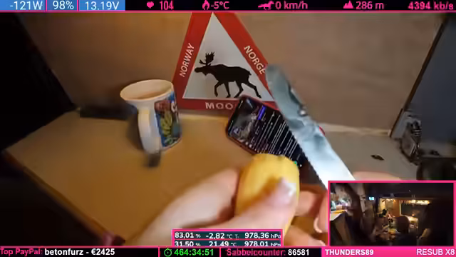 11:10:33Der Stream startet mit technischen Anpassungen und Vorabinformationen zur aktuellen Situation. Die Position wird als Minus 5 Grad gemessen, was die Nacht kälter, aber das Fahren auf dem Eis verbessern wird. Nach anfänglichen technischen Hürden mit der Kamera und den Kabeln, die nach kurzer Zeit behoben sind, stabilisiert sich der Stream. Anschließend beginnt die tägliche Routine mit dem Kochen, wobei die Planung für eine Mahlzeit mit vielen Kartoffeln, Gemüse, Sauce und Eiern im Mittelpunkt steht, um den großen Hunger der Anwesenden zu stillen.