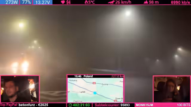 06:29:21Polnische Landstraßen werden als besonders gefährlich eingestuft, mit hoher Unfallrate und schlechter Infrastruktur. Fehlende Markierungen, marode Fahrbahnen und riskantes Fahrverhalten der Einheimischen werden kritisch thematisiert. Ein Beispiel eines Streaming-Kollegen, der beinahe verunglückte, unterstreicht die Gefahren. Die aktuelle Fahrt erfordert hohe Konzentration, besonders bei Nebel und eingeschränkter Sicht.