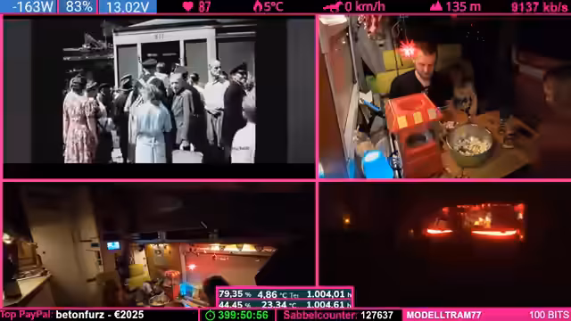 10:42:21Es wird über teure Modellbahn-Lokomotiven und Zubehör gesprochen. Technische Schwierigkeiten mit der YouTube-App (fehlende Suchfunktion auf Kanälen) führen zu Frustration. Parallel werden Remastered-Videos historischer Straßenszenen (u.a. Berlin 1945, San Francisco 1906) gezeigt, die großes Interesse wecken. Die Aufmerksamkeit gilt auch der praktischen Stream-Steuerung via Fernbedienung.