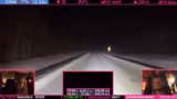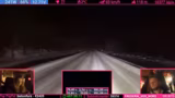 08:02:15Der Streamer fährt in eine Region mit starken, unvorhersehbaren Winden. Plötzliche Windböen schieben den Sprinter mehrmals seitlich zur Fahrbahn, was zu gefährlichen Lenkmanövern zwingt. Der Fahrer beschreibt, wie er vorsichtig gegenlenken muss, um einen Unfall oder einen Überschlag zu verhindern. Die Gegend ist hügelig mit vielen Kurven, die zu einer deutlich reduzierten Geschwindigkeit zwingen, zusätzlich zu den schon bestehenden Gefahren durch Wind und Eis.