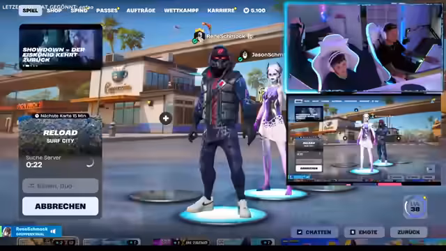 00:00:34Der Stream beginnt mit einer kurzen Vorbereitung auf ein Fortnite-Spiel. Es wird eine Server-Suche gestartet, wobei angemerkt wird, dass es sich nicht um das offizielle Reload-Event handelt. Die Spieler beabsichtigen, eine Reload-Runde zu spielen, bei der sie Bauen und Combat betonen, um den 'Brainrot' zu stehlen. Während der Suche wird deutlich, dass es kein offizielles 'Creative Reload' gibt, was zu einer leichten Verwirrung führt. Der Fokus liegt auf einem schnellen, actionreichen Start ins Spiel.