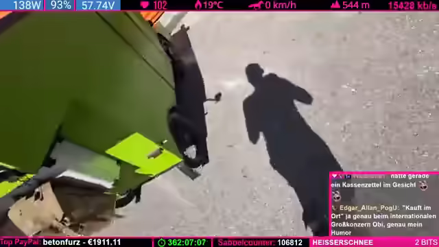 01:44:21Es gibt weiterhin technische Probleme mit dem Stream, die möglicherweise an Serverproblemen oder Routing-Problemen liegen. Verschiedene Lösungsansätze werden ausprobiert, darunter die Reduzierung der Bitrate und die Zuschaltung von Starlink. Ein anderer Verkehrsteilnehmer verursacht fast einen Unfall. Es wird überlegt, ob eine Lebensversicherung nachträglich bestellt werden kann. Die Internetverbindung ist eigentlich gut, aber der SRTLA-Feed bricht immer wieder ab. Es wird vermutet, dass es sich um ein externes Problem handelt, möglicherweise ein Routing- oder Serverproblem. Während der Fahrt verhebt sich der Streamer das Kreuz. Der Streamer erreicht die Nordkamp. Es wird überlegt, ob die Klemmung ausreicht und ob eine zweite Klemmung angebracht werden muss. Die Imbusschrauben werden erst im Baumarkt mit dem richtigen Schlüssel und Schraubensicherungslack festgezogen.