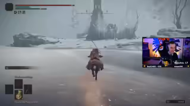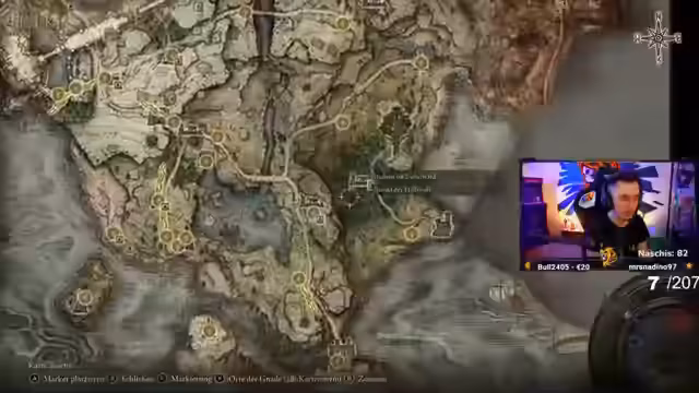 10:09:45Der Streamer erkundet zufällig generierte Bereiche in Limgrave und stellt fest, dass die Wege verwirrend sind. Er begegnet verschiedenen Gegnern, darunter einem Bären und einem Hund, und kämpft gegen den Eisenstuhl. Nach einem gescheiterten Versuch, einen bestimmten Boss zu finden, und einigen Fehlentscheidungen bei der Navigation gelingt es ihm, den Boss zu besiegen. Der Run verläuft zunächst ohne Todesfälle, wobei der Streamer zufällig Items wie den Talisman aller Schmelztiegel findet, aber auch das Fehlen wichtiger Upgrades wie eines Dreier-Schmiedesteins bemängelt.