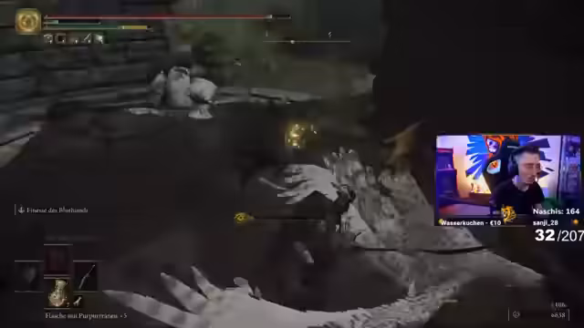 09:02:37Der Streamer erkundet eine gefährliche Höhle mit viel Sturzschaden, was ihm große Angst bereitet. Beim Kampf gegen den Boss wird eine neue Waffe, der Heulnisstab, gefunden, der stark ist, aber hohe Stärkeanforderungen hat. Die Jagd nach Ressourcen wie Schmiedesteinen und heiligen Tränen wird fortgesetzt, um die Ausrüstung zu verbessern, während immer wieder Zeit mit der Suche nach vergessenen Orten und Items verschwendet wird.