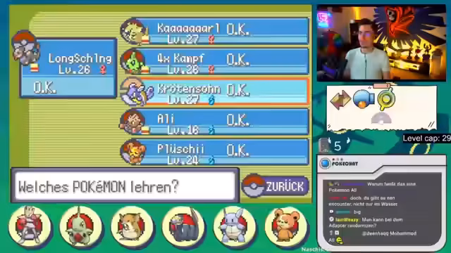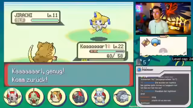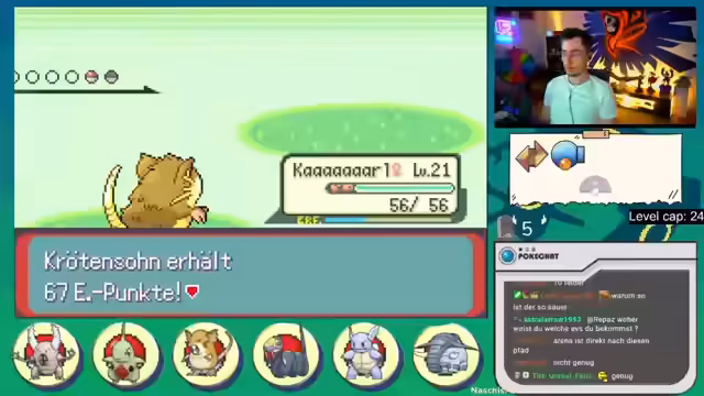 03:06:40Der Streamer erlebt sowohl Erfolge als auch Rückschläge auf seinem Pokémon-Run. Er kann einige Pokémon erfolgreich fangen und sein Team trainieren, stößt aber auch auf Schwierigkeiten. So überlevelt er versehentlich ein Pokémon, was später zu einem Problem wird, als er gegen den Arenaleiter Norman kämpft. Auch das Fangen mancher Pokémon gestaltet sich schwierig, was zu Frustration führt.