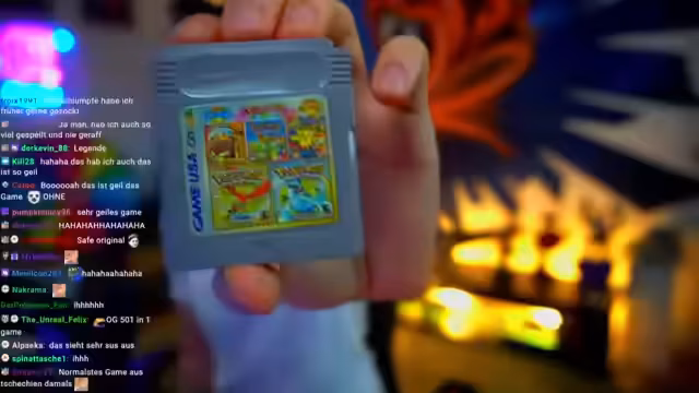 00:14:15Ausführliche Vorstellung des GB Operators mit Demonstration seiner Funktionen. Streamer zeigt, wie das Gerät funktioniert, wie man Spielstände speichert und wie es als Emulator dient. Er erwähnt, dass man Grafik-Einstellungen anpassen und theoretisch sogar vorspulen kann. Er erklärt die rechtliche Seite des Betriebs, da es sich um eine legale Methode zum Spielen alter Spiele handelt, und zeigt seine Pokémon-Sammlung auf der Original-Cartridge.