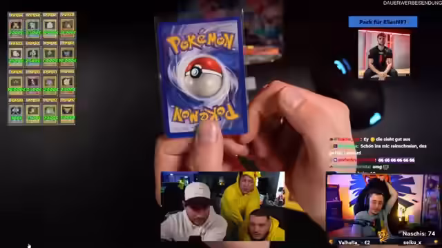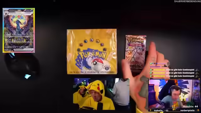 05:11:18Es wird überlegt, ob man Karten werten lassen soll und ob die Karten in 20 Jahren wertvoller sein könnten. Es wird gesagt, dass es finanziell am besten ist, die Einzelkarten zu kaufen, die man haben will. Es werden prismatische Entwicklungen im Japanischen geöffnet. Es wird erwähnt, dass beim letzten Opening fünf der acht besten Karten gezogen wurden. Es wird überlegt, die fehlenden Evoli-Entwicklungen einzeln zu kaufen. Es wird überlegt, ob die Mikrofone von den Cams aufgewählt sind. Es wird ein Pokéball gezogen. Es wird überlegt, ob die Wette durch ist. Es wird gesagt, dass das Level eine Schande für Deutschland ist. Es wird ein Schluck getrunken. Es wird gesagt, dass die Karte reversed und seltener ist. Es wird gefragt, wie viele schon aufgemacht wurden.