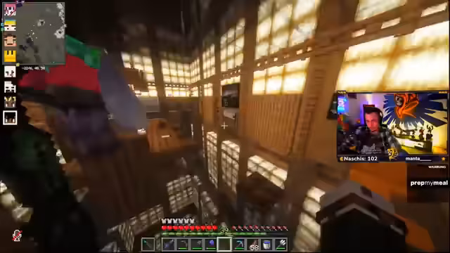01:23:40Nach dem Betreten des Infinity Castles beginnen die Spieler mit der Erkundung und stellen Fragen zu den Designentscheidungen. Ein riesiger Stuhl im Gebäude wirft Fragen auf, dessen Ursprung in einer Vorlage von G-Time und seinem Team liegt, inspiriert vom Thronsaal aus dem Anime Demon Slayer. Der Meetingraum, ein zentraler Ort im Nordwesten, wird ebenfalls besichtigt. Die Spieler sind beeindruckt von der Detailverliebtheit und der Größe des Bauwerks. Es wird angeregt, die Spielstatistiken einzusehen, um die geleistete Arbeit zu visualisieren. Trotz kleinerer technischer Schwierigkeiten, wie nicht funktionierenden Raketen für die Flugbewegung, genießen die Teilnehmer die Erkundung und den Austausch über die verschiedenen Bereiche des Castles.