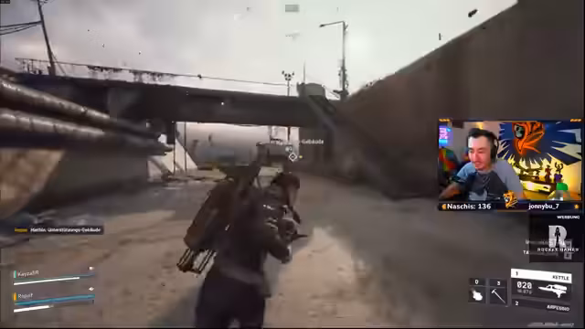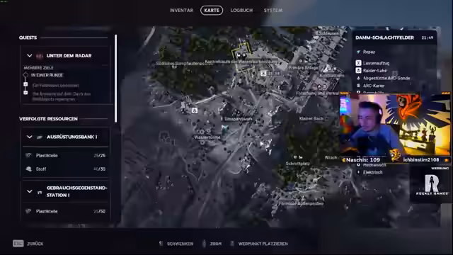 03:12:17Der Streamer beginnt seine erste richtige Runde in Arc Raiders, nachdem er es zuvor nur kurz gespielt hat. Er ist noch ein 'Baby' im Spiel und muss sich an die Reizüberflutung gewöhnen. Er hat bereits einige Spieler getötet, was zu Schockreaktionen führte. Er versucht, die Mechaniken des Spiels zu verstehen, wie das Besorgen von Kabeln und Akkus und das Verwalten des Inventars. Er stößt auf Schwierigkeiten beim Starten eines Einsatzes mit Gratis-Loadout aufgrund fehlenden Lagerplatzes und muss sein Inventar verwalten. Er testet die Sprachfunktionen und die Waffe, die er besitzt. Er plant, seinen Gaming-PC nächste Woche aufzurüsten, um die Stream-Qualität zu verbessern. Er kämpft mit der Lautstärke des Spiels und versucht, sich in der Map zurechtzufinden, während er Aufgaben erledigt und Loot sammelt.