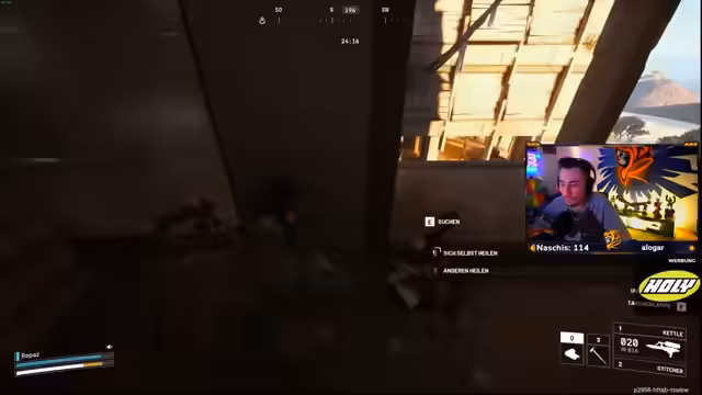 06:20:21Ein anderer Spieler tritt dem Streamer bei und gibt ihm Tipps zum Spiel. Der Spieler erklärt, dass die krassesten Granaten mit einem Granatentisch auf Stufe 3 hergestellt werden können. Er bietet an, dem Streamer die Runde zu erklären und weist auf die rote Area als Ort mit gutem Loot hin. Es wird besprochen, dass in Solo-Lobbys alle freundlich sind, während in Duos und Trios die Spieler aggressiver sind. Der Spieler gibt Tipps zum Looten und zur Nutzung der Rollfunktion, um Fallschaden zu vermeiden. Es wird auch über die Spielzeit und das Erreichen von Blueprints gesprochen, wobei der andere Spieler bereits über 100 Stunden im Spiel verbracht hat.