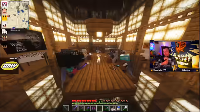 00:48:24Die geplante Eröffnung des Infinity Castle verzögert sich weiter, da der Server aufgrund massiver Lags zusammenbricht. Die Spieler sind frustriert über die technischen Schwierigkeiten, die genau am Tag des Events auftreten. Es wird diskutiert, ob ein Server-Neustart notwendig ist, um die Probleme zu beheben. Währenddessen versuchen die Spieler, die letzten Vorbereitungen zu treffen, wie das Entfernen von störenden Blöcken und das Hinzufügen von fehlenden Wolleblöcken. Die Kommunikation wird durch die Lags erschwert, und es kommt zu Missverständnissen bezüglich der Gestaltung des Castles. Ein VPN wird als mögliche Lösung für die Lags diskutiert, aber viele Spieler sind unsicher, wie man ihn einrichtet, und es besteht die Sorge vor Viren. Die Situation ist chaotisch, und die Spieler versuchen, improvisierte Lösungen zu finden, um die Eröffnung doch noch zu ermöglichen.