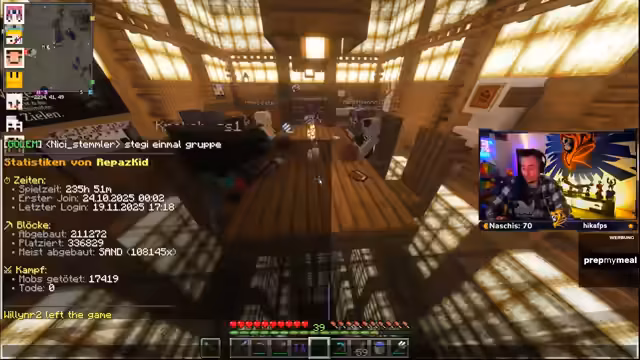 00:08:12Der Streamer widmet sich den praktischen Vorbereitungen für die geplante Eröffnung des Infinity Castle um 18 Uhr. Hauptaufgabe ist die Beseitigung von Kisten und anderem Zeug im Eingangsbereich, um einen sauberen und einladenden Eindruck zu erzeugen. Währenddessen treten erhebliche technische Probleme auf. Der Server leidet unter extremen Lags und Performance-Problemen, was der Streamer auf mögliche Telekom-Verbindungsprobleme und Hackerangriffe zurückführt. Diese Umstände machen die Fertigstellung und das Event zu einer Herausforderung. Er erwähnt zudem, dass das Team in den letzten Wochen harte Arbeit geleistet hat, um das Projekt fertigzustellen und Teamsitzungen abgehalten zu haben.