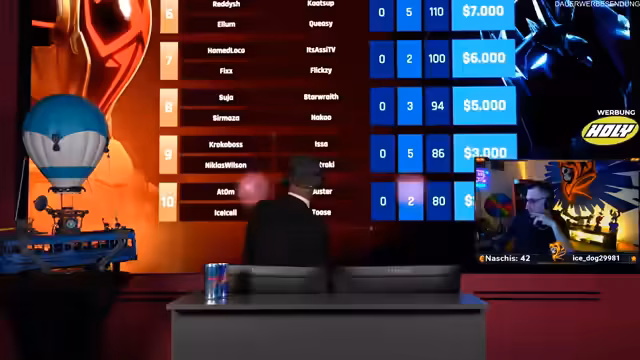 04:57:25Als das Turnier dem Ende entgegengeht, werden die finalen Platzierungen bekannt gegeben. Das Team platzierte sich im Mittelfeld. Jetzt bricht eine Diskussion über die anstehenden Nerfs für den nächsten Tag los. Dem Team werden zufällige, potenziell schwere Spielbeschränkungen auferlegt, die die Chancen auf einen Turniersieg erheblich mindern. Die Stimmung ist resigniert und wütend zugleich, da die Nervenstrafe als willkürlich und unfaßbar empfunden wird, besonders im Vergleich zu anderen Teams, die davon nicht betroffen sind. Es herrscht die Befürchtung, dass die Chancen auf einen Sieg bereits im Voraus zunichtegemacht werden.