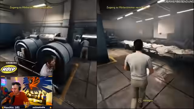 10:13:53Der Streamer beginnt mit dem Gameplay des Koop-Spiels 'A Way Out', wobei er und sein Partner die Charaktere Vincent und Leo übernehmen, die nach einer Gefängnisstrafe auf der Flucht sind. Das Gameplay ist stark von Stealth-Elementen, Quicktime-Events und Dialogen geprägt. Die Spieler müssen strategisch vorgehen, um Wachen abzulenken und komplexe Rätsel zu lösen, was zu einem intensiven und filmhaften Erlebnis führt. Der Fokus liegt auf der Zusammenarbeit der beiden Charaktere, um aus dem Gefängnis zu entkommen.