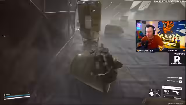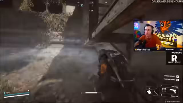 04:53:31Die gefundene Bobcat 3 wird eingehend getestet. Ihre hohe Feuerrate und der optionale legendäre Aufsatz werden als extrem vorteilhaft für PvP-Szenarien bewertet. Die geplante Session mit einem Freund Chris wird angekündigt. Nach intensiven Gameplay-Momenten, die mitunter vom Hunger des Streamers unterbrochen werden, erfolgt ein plötzlicher Wechsel zu einem Werbeclip für einen 24-Stunden-Stream mit Knossi.