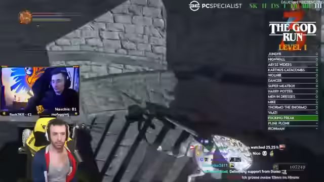 01:36:01Repaz fragt sich, warum die Amis sagen können, dass sie Mates sammeln, und wir nicht. Er fragt sich, ob es ein Matchmaking und eine MMR gibt. Repaz lobt seine Mates, die das Game langsam checken. Er überlegt, welche Verbesserung er nehmen soll und entscheidet sich für maximale Ausdauer. Repaz und sein Team kommen in einen Raum mit Druckplatten. Repaz lobt seine Mates, dass sie so oft zach sind, aber jetzt pennen die einfach. Repaz nimmt eine Waffe, die Schaden erleidet und FP regeneriert. Er überlegt, ob er das Lager ausmerzen soll, stellt aber fest, dass seine Mates leider schlafen. Repaz stellt fest, dass ein Lager von Rittern zu Bestienviechern gewechselt hat. Repaz nimmt eine Verbesserung, die die Resistenz gegen körperlichen Schaden erhöht. Er stellt fest, dass seine Mates ultra stark geworden sind im Vergleich zu den Runden davor. Repaz möchte einen Schatz decken, aber seine Mates wollen Siegelgefängnis machen. Repaz stellt fest, dass der Schatz Kinderverarscher ist und sie Zeit verschwenden. Repaz holt sich einen lila Spell und stellt fest, dass er immer noch vier Tränke hat und den fünften holen muss. Repaz erreicht Level 10 und fragt sich, ob es ein gutes Level für den zweiten Tag, Boss ist. Repaz will unbedingt einen fünften Drink haben. Repaz nimmt einen Zwischenboss mit und holt sich den fünften Drink. Repaz belebt den Mage wieder. Repaz versucht, zum Thema die Spawn zu bringen. Repaz findet die Legende von Zahm nicht und stellt fest, dass der Mate ihn schlägt. Repaz erreicht Level 11. Repaz besiegt den Baumwächter und geht zu einem Endboss. Repaz ist in der Arena von Radar und kämpft gegen Gladius, die Bestie der Nacht.