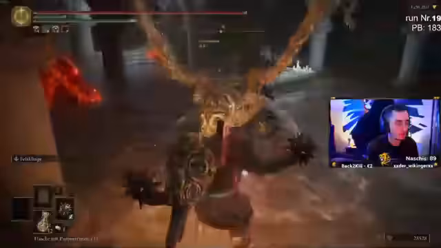 12:27:06Der Streamer freut sich über 155 besiegte Bosse und betont, dass noch viele starke Bosse übrig sind. Er ist in der Mogwin-Dynastie angekommen und befürchtet, dass es dort sehr schwer wird. Er erinnert sich daran, dass er einen Schlüssel für den Hausvulkan benötigt und plant, diesen zu holen, da dort noch drei Bosse fehlen. Er erwähnt den Curse Mark of Death, der erst im Harlech Tree verfügbar ist. Er plant, den Schlüssel für das Gesellschaftszimmer in der Mogwin-Dynastie zu holen, da er dort einen Händler vermutet. Er sammelt einen goldenen Saatspot ein und überlegt, ob Moog den Schlüssel droppen könnte. Er öffnet eine Truhe und befürchtet, dass die Hölle los sein wird. Er entdeckt einen Schlüssel zum Gedeckten und eine Goldene Saat. Er plant, am nächsten Tag mit dem Hausvulkan weiterzumachen. Er überlegt, wie er seine Werte verteilen soll und fragt die Zuschauer nach Rat bezüglich Weisheit, Arkanenergie und Blutung.