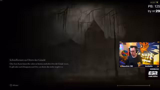05:02:04Der Streamer begibt sich auf eine Reise nach Limgrave, wobei er verschiedene Orte wie Dan Vade erkundet und nach möglichen DLC-Inhalten sucht. Er interagiert mit NPCs wie Patches und nutzt Meme-Matches für humorvolle Momente während des Gameplays. Dabei trifft er auf gefährliche Gegner wie Goleme und Dunkelkableristen, die seine Aufmerksamkeit erfordern und schnelle Reaktionen verlangen.