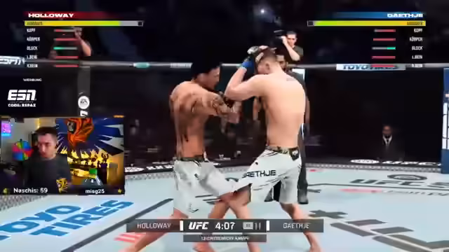 02:54:55Der Streamer und die Gruppe spielen ein UFC-Spiel. Die Diskussion dreht sich um die Kampfstrategien, insbesondere den 'Uppercut Spam' mit einem bestimmten Charakter namens 'Ilja'. Die Stärken des Charakters werden analysiert, aber auch seine Schwächen im Grappling und Bodenkampf, die in diesem Matchmodus ohnehin nicht zugelassen sind. Auch das Turnier Anfang August wird erneut erwähnt.
