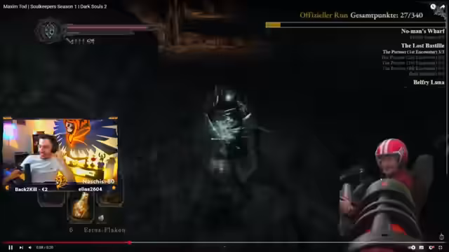 03:40:17Der Streamer spricht über Erfahrungen mit Dark Souls-Spielen. Er erwähnt, dass er Dark Souls 3 beobachtet hat, besonders die Runs von Streamern wie Holly und Leon. Er bewundert Hollys Leistung und Leon organisierte Präsentationen, was er jedoch zu aufwändig findet. Er zeigt Interesse an einer Website, die die Tode der Streamer dokumentiert.